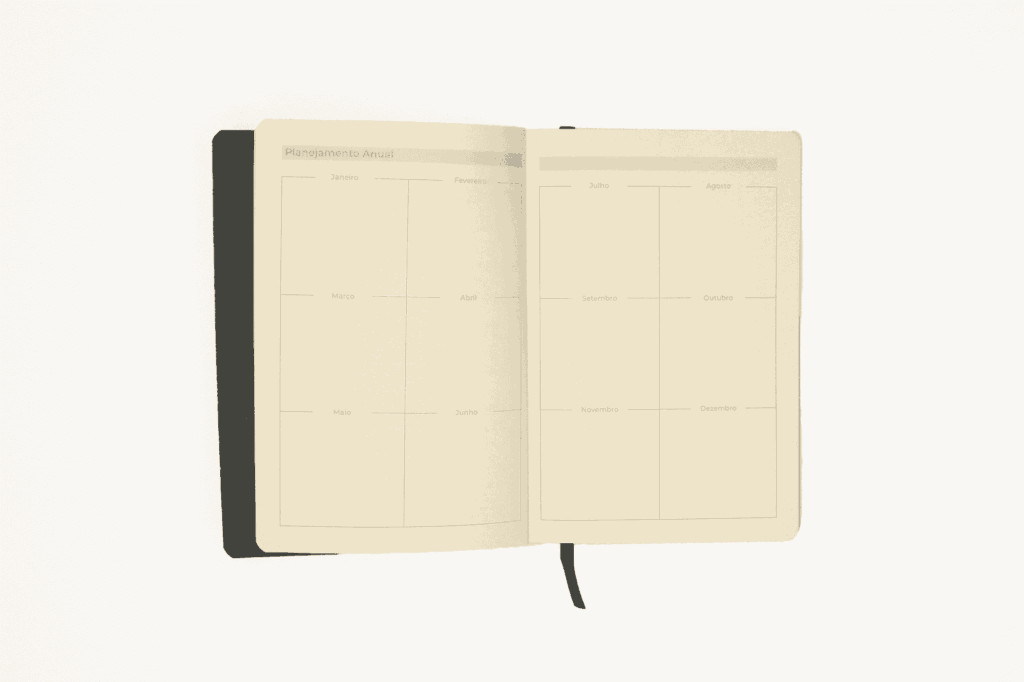 : Apesar de compacto, este planner oferece todas as funcionalidades essenciais, desde planejamento anual até listas de verificação e espaço para anotações.
