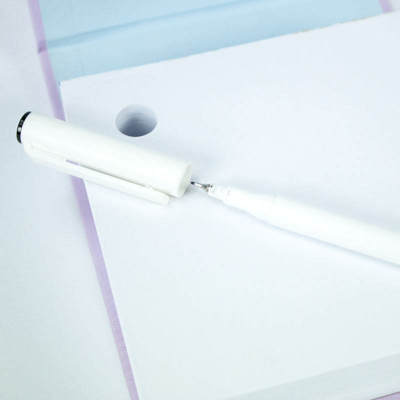 O buraco para encaixe da caneta torna este bloco extremamente prático. Você nunca mais terá que procurar por uma caneta novamente, economizando tempo e aumentando sua eficiência no trabalho ou nos estudos.
