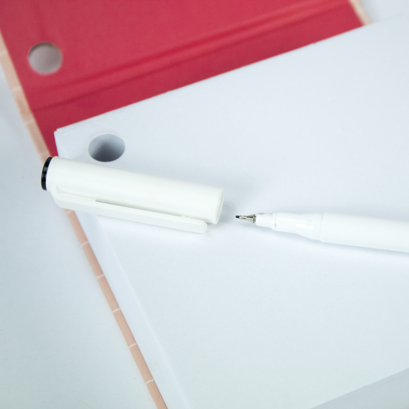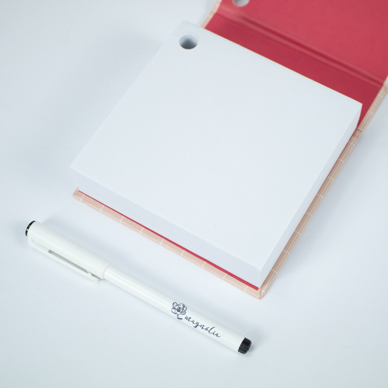 O buraco para encaixe da caneta torna este bloco extremamente prático. Você nunca mais terá que procurar por uma caneta novamente, economizando tempo e aumentando sua eficiência no trabalho ou nos estudos.