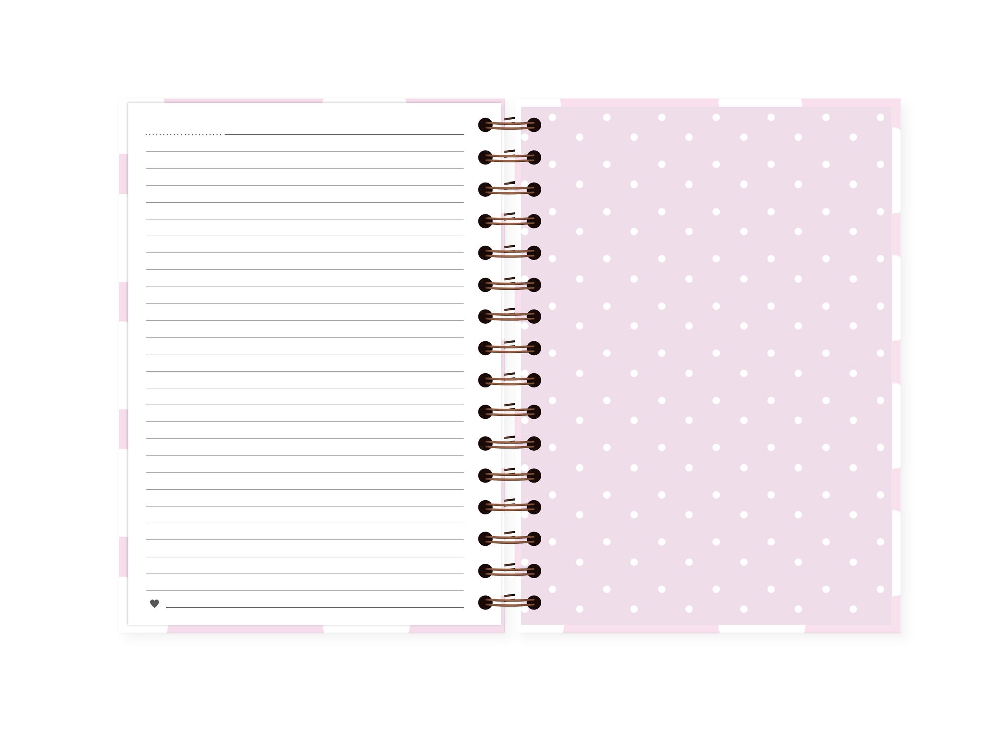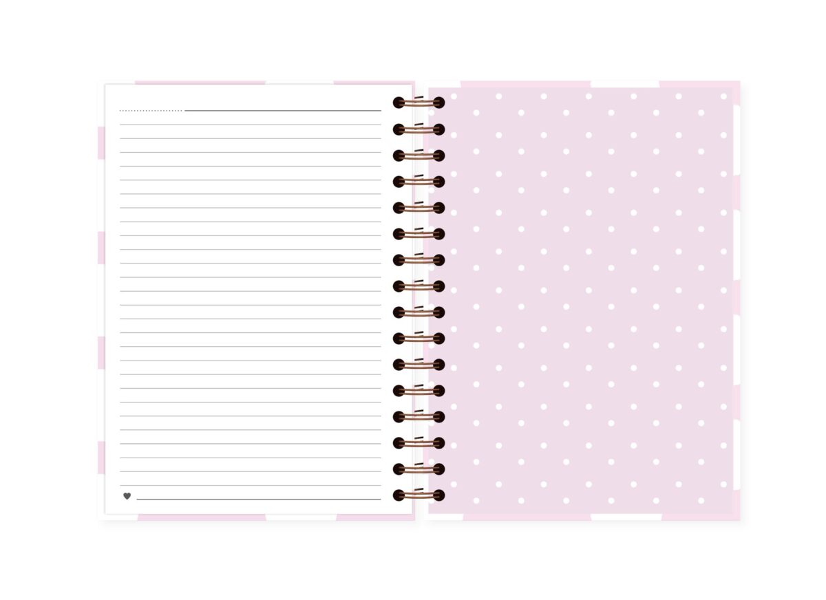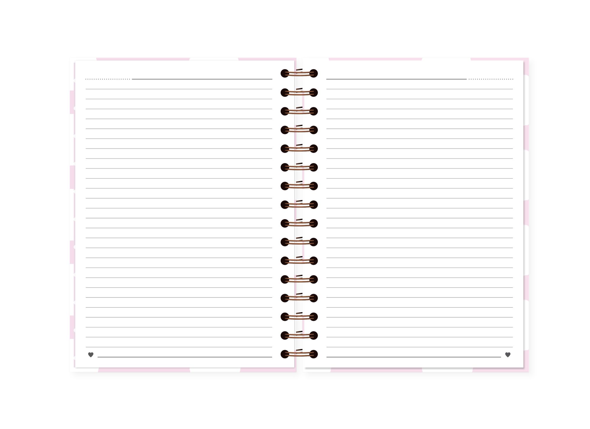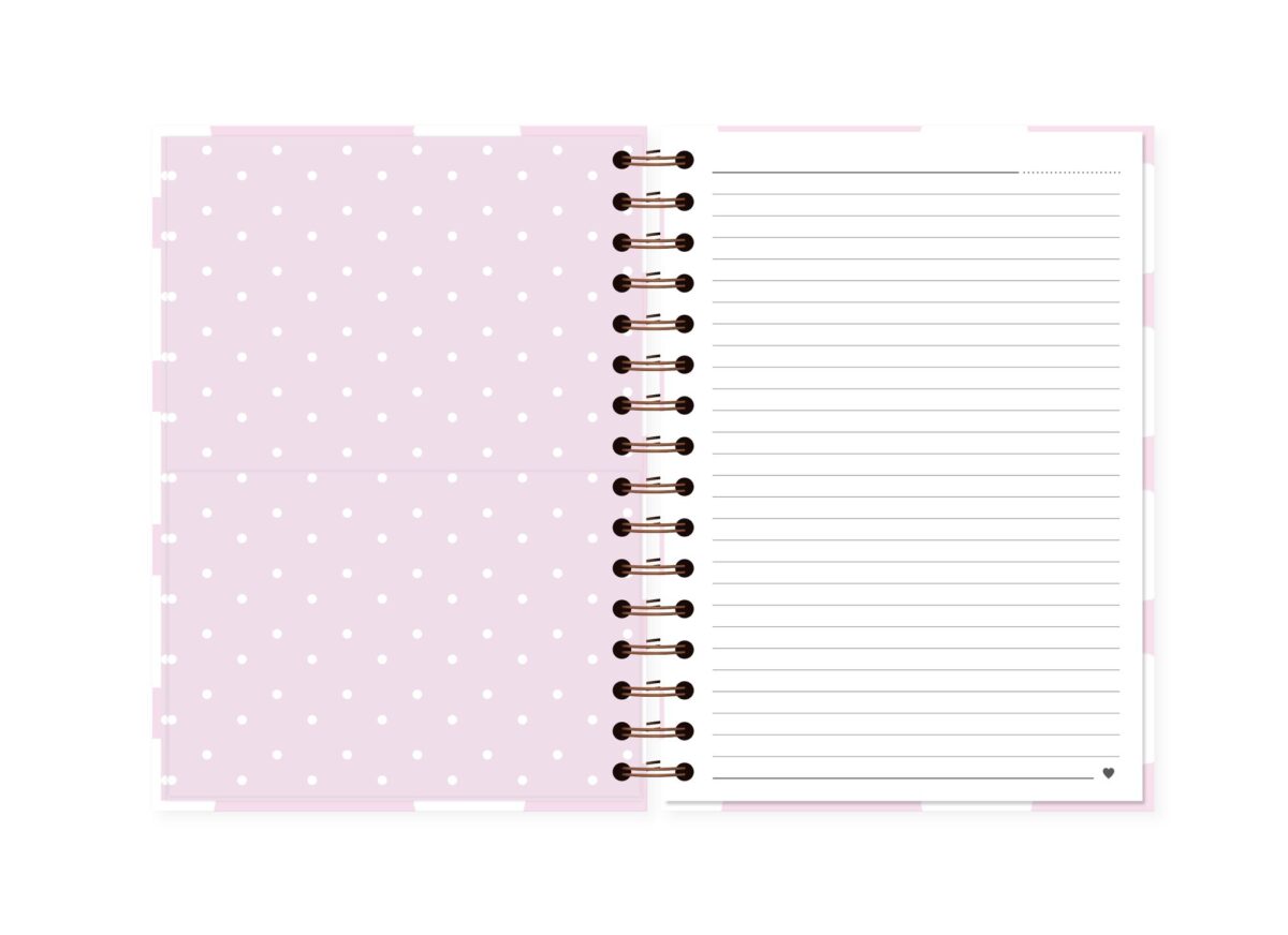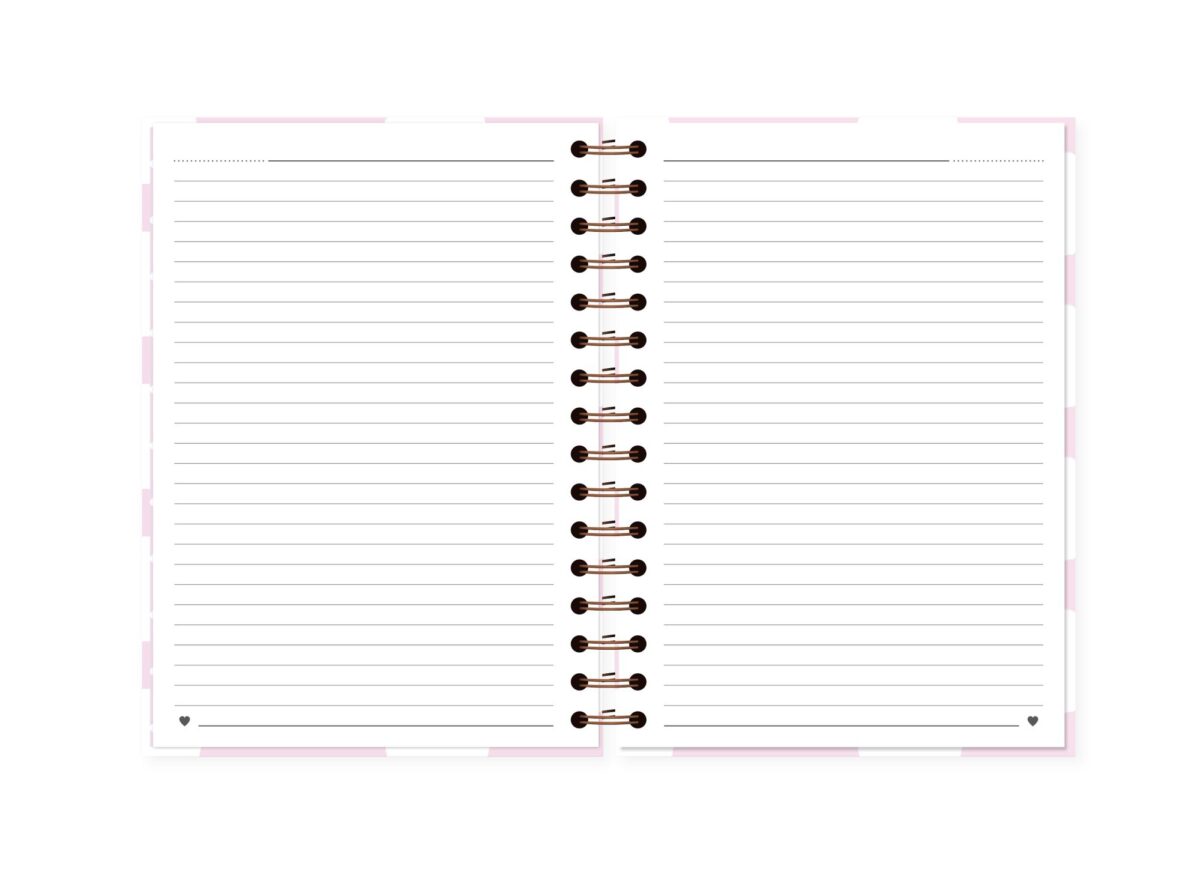 - Capa dura e encadernação wire-o garantem durabilidade e um visual moderno. O elástico colorido adiciona um toque de estilo e funcionalidade, mantendo suas anotações seguras.