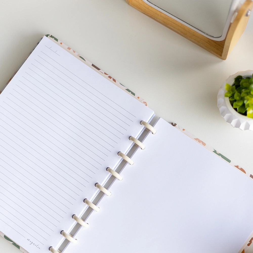 O grande diferencial do nosso caderno de disco está na sua flexibilidade. Graças aos discos que prendem as folhas, você pode trocar, remover e adicionar folhas conforme desejar, garantindo que seu caderno esteja sempre organizado e adaptado às suas necessidades em constante mudança.