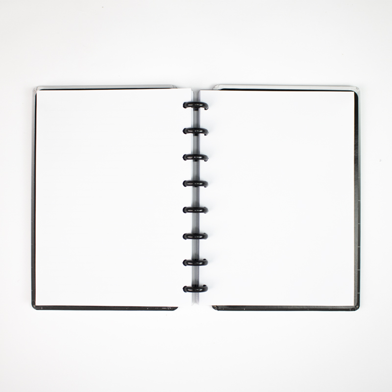 O grande diferencial do nosso caderno de disco está na sua flexibilidade. Graças aos discos que prendem as folhas, você pode trocar, remover e adicionar folhas conforme desejar, garantindo que seu caderno esteja sempre organizado e adaptado às suas necessidades em constante mudança.
