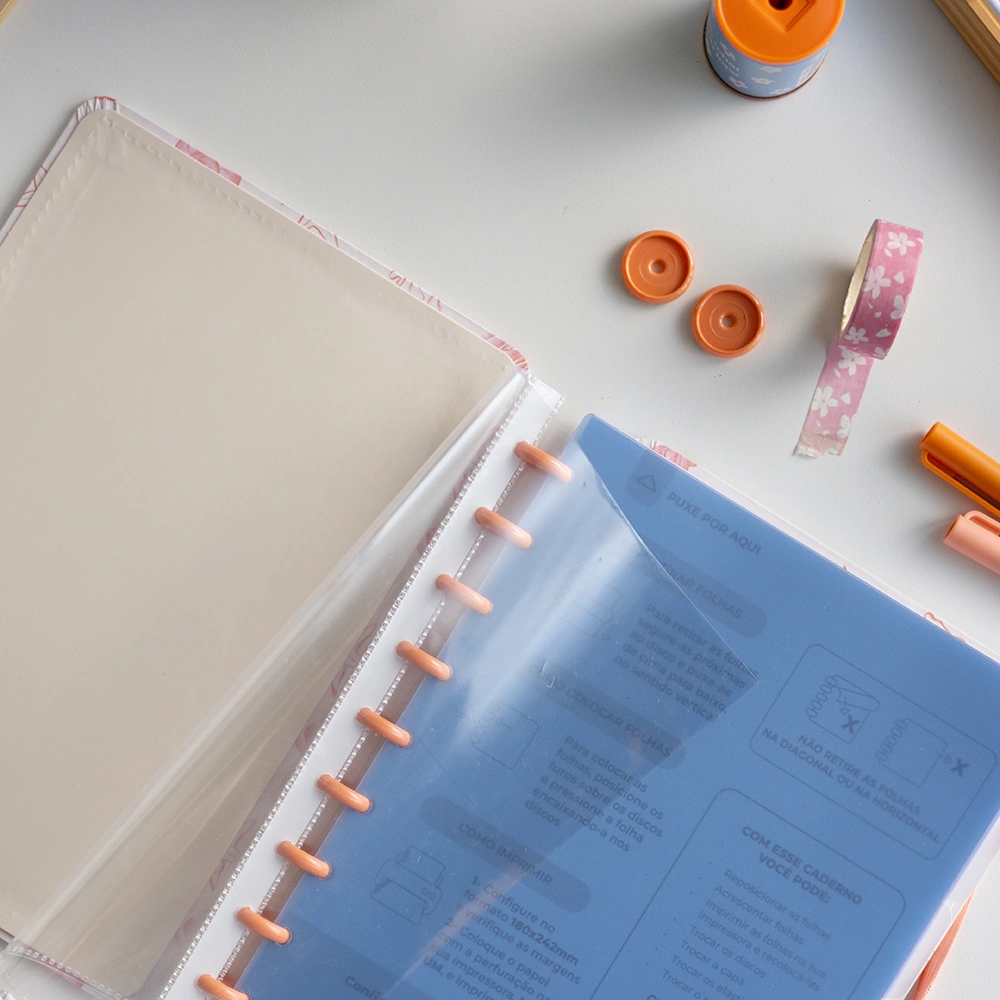 O grande diferencial do nosso caderno de disco está na sua flexibilidade. Graças aos discos que prendem as folhas, você pode trocar, remover e adicionar folhas conforme desejar, garantindo que seu caderno esteja sempre organizado e adaptado às suas necessidades em constante mudança.