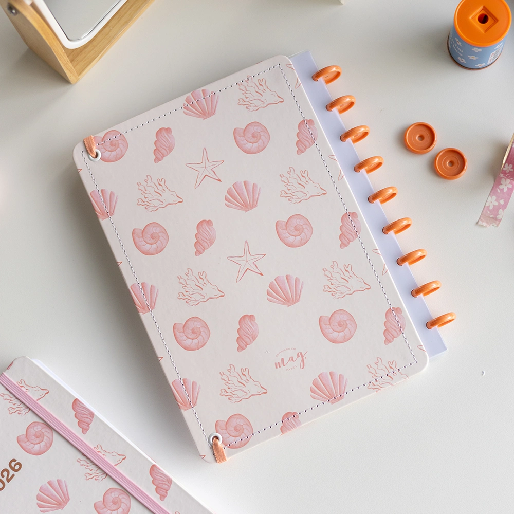 Com sua estampa cheia de conchas e estrelas do mar ele é perfeito pra combinar com seu Planner Diário 2026 Mon Amour Sea Shells.