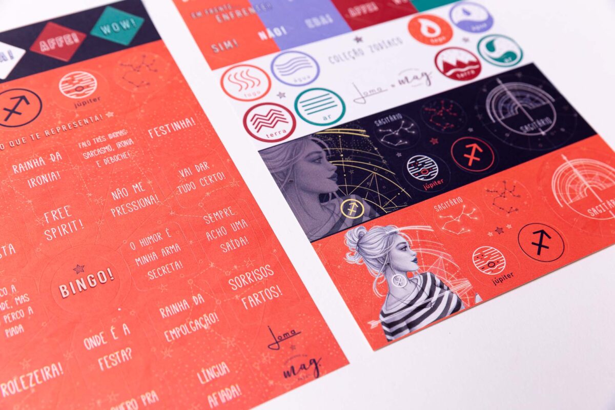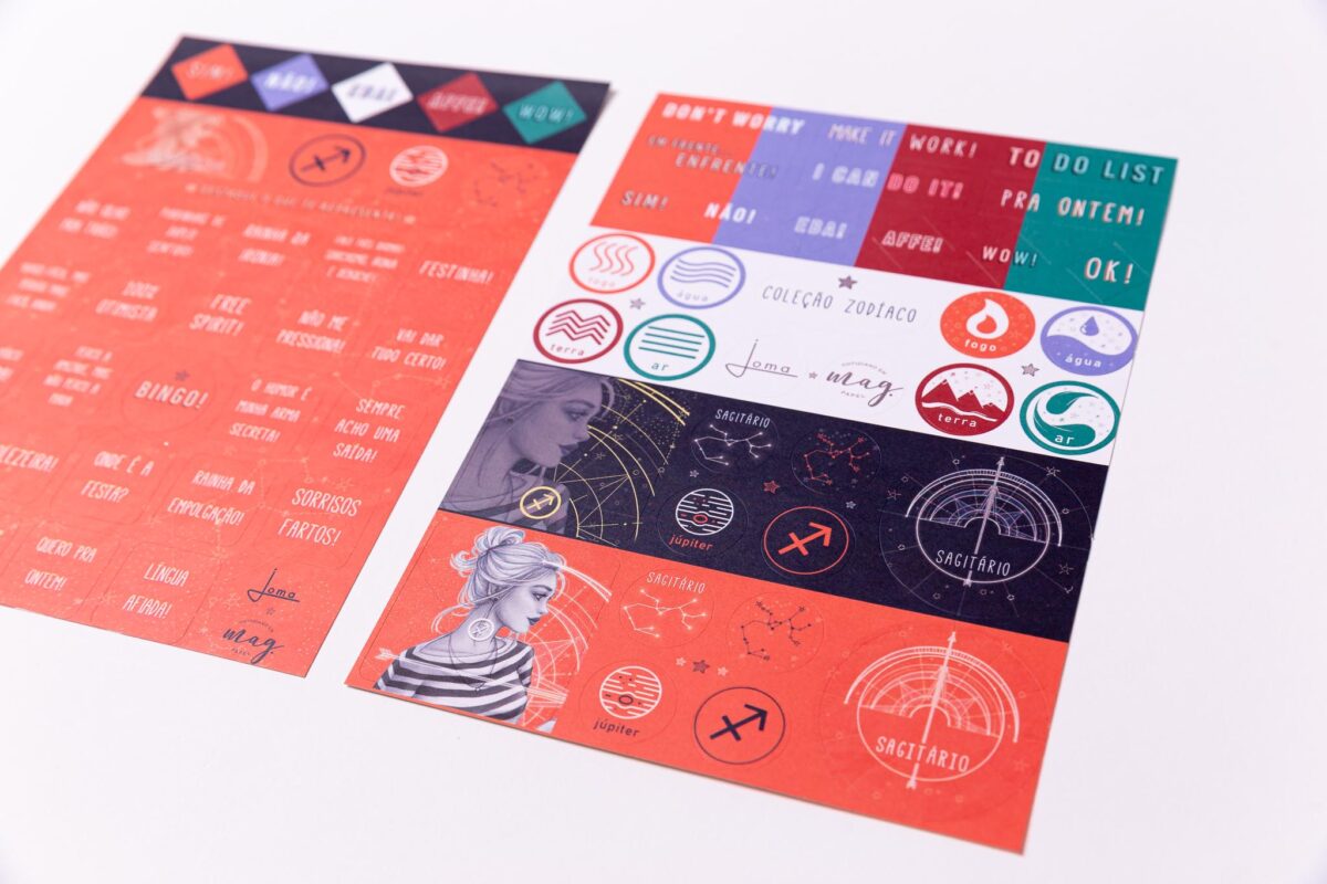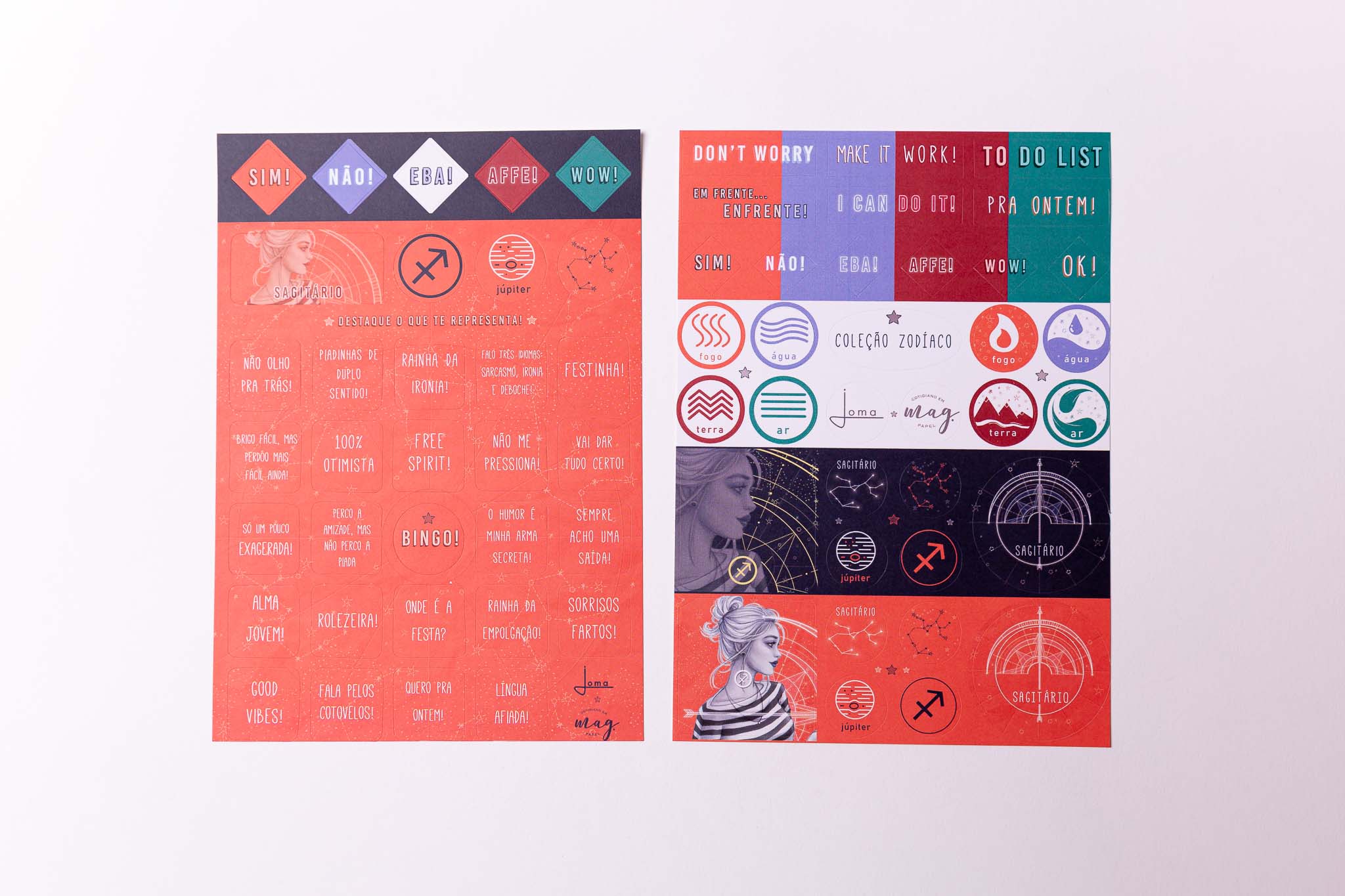- Design temático: Cada cartela apresenta belos designs inspirados nos signos do zodíaco, trazendo elementos astrológicos que vão iluminar suas páginas.