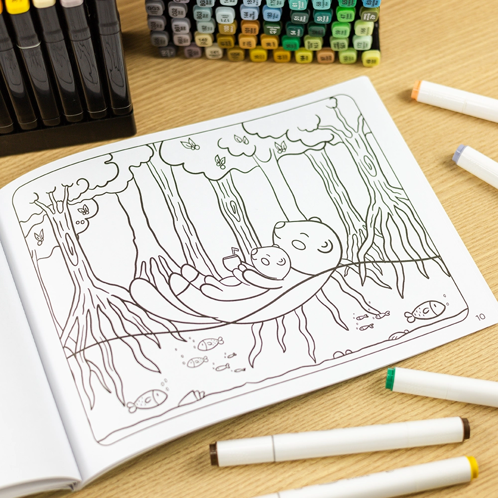 - Cenas ilustradas com traços delicados e expressivos, prontas para ganhar vida com as suas cores