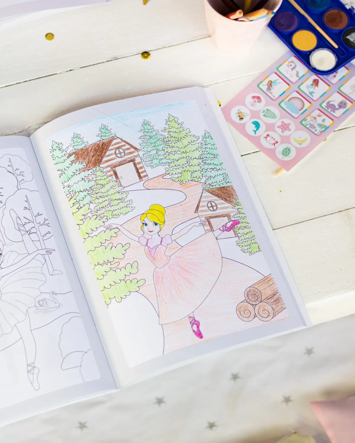 • Papel de Qualidade: As folhas são feitas de papel resistente, com gramatura 90 g/m² permitindo o uso de lápis de cor e canetinhas.