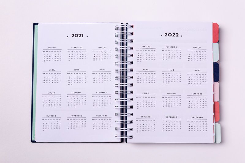 Calendário inicial (contêm datas antigas): Não se preocupe, as datas antigas no calendário inicial não interferem na usabilidade. Você pode começar a usar o planner a qualquer momento.