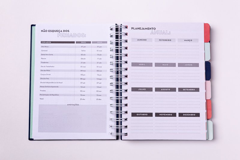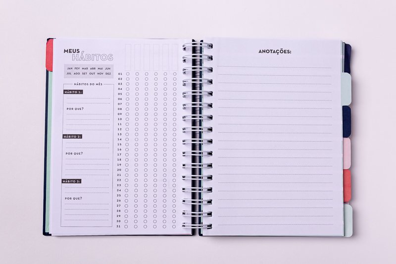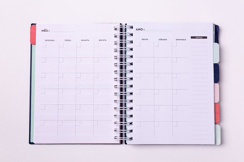 Calendário personalizável: Como o planner é não datado, você pode adaptá-lo a qualquer período, começando a usar quando quiser.