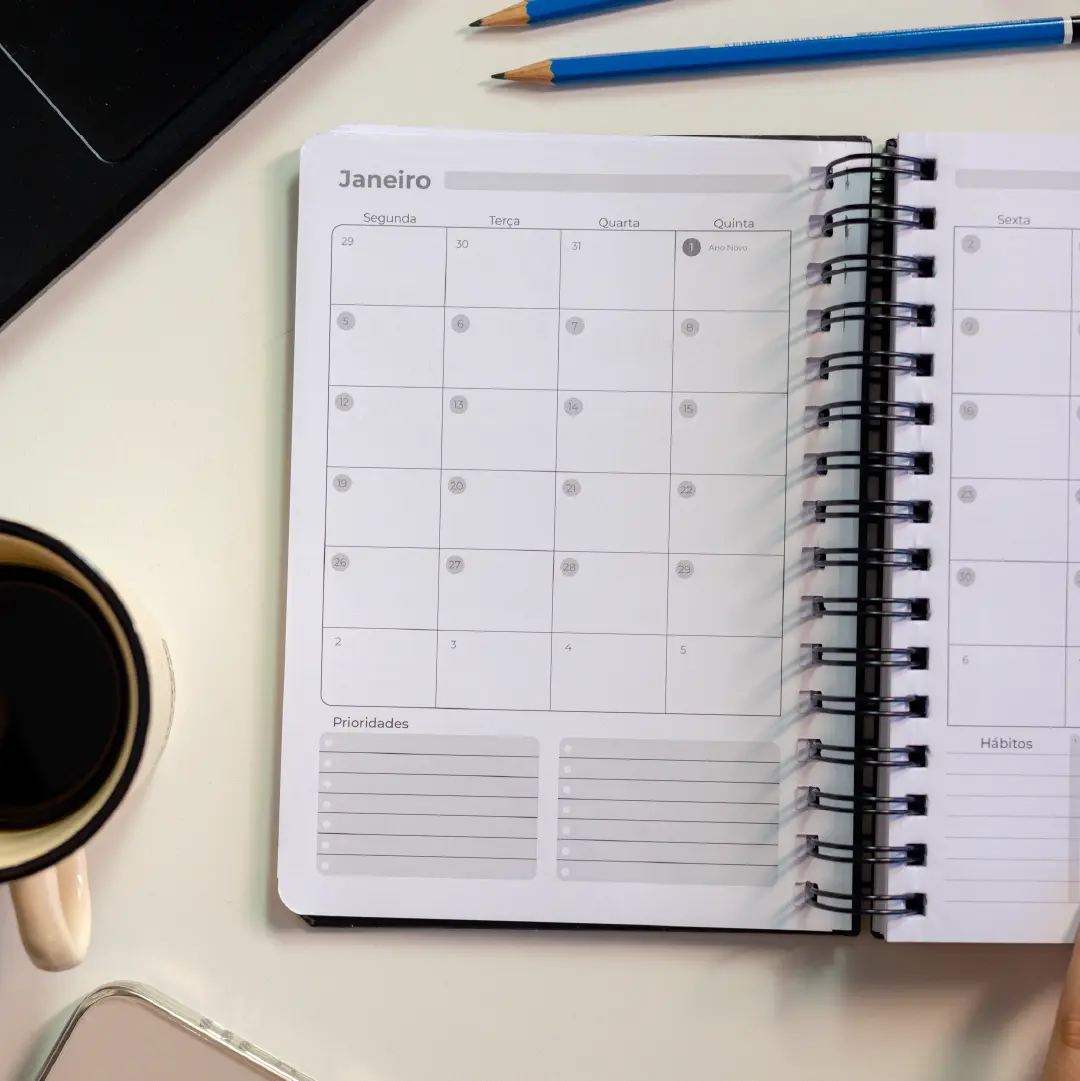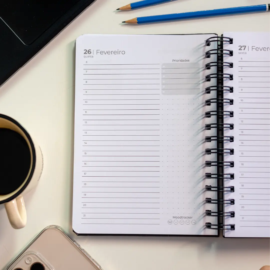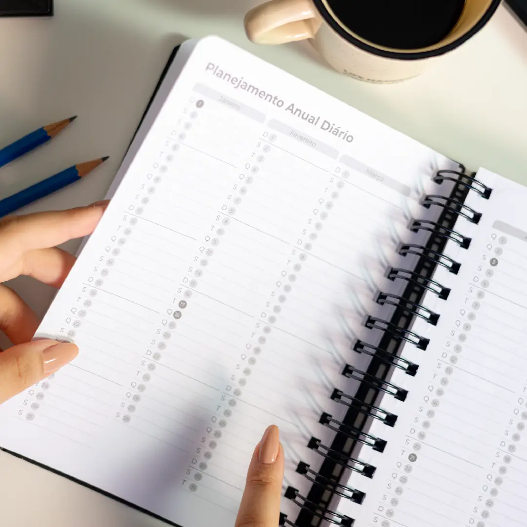 Ideal para quem deseja um planejamento diário detalhado, com espaço para metas, hábitos e reflexões.