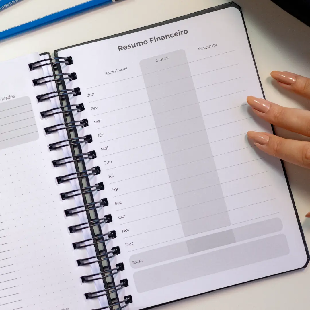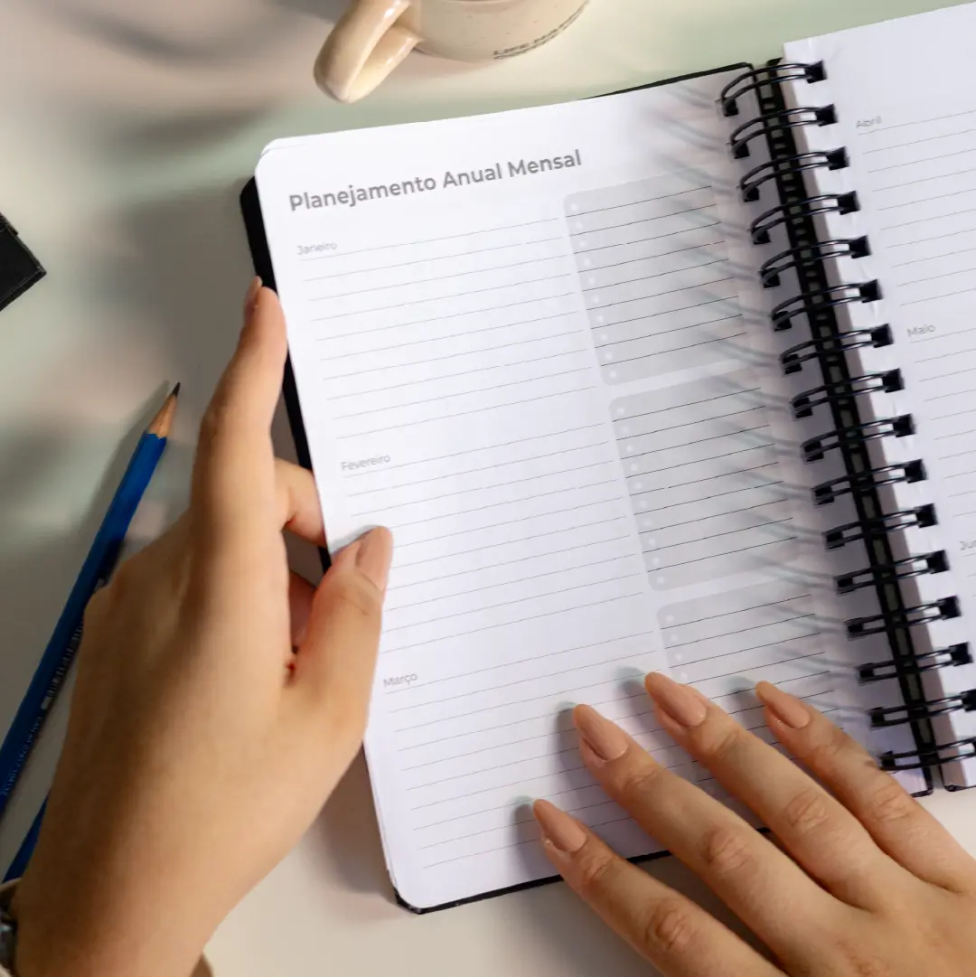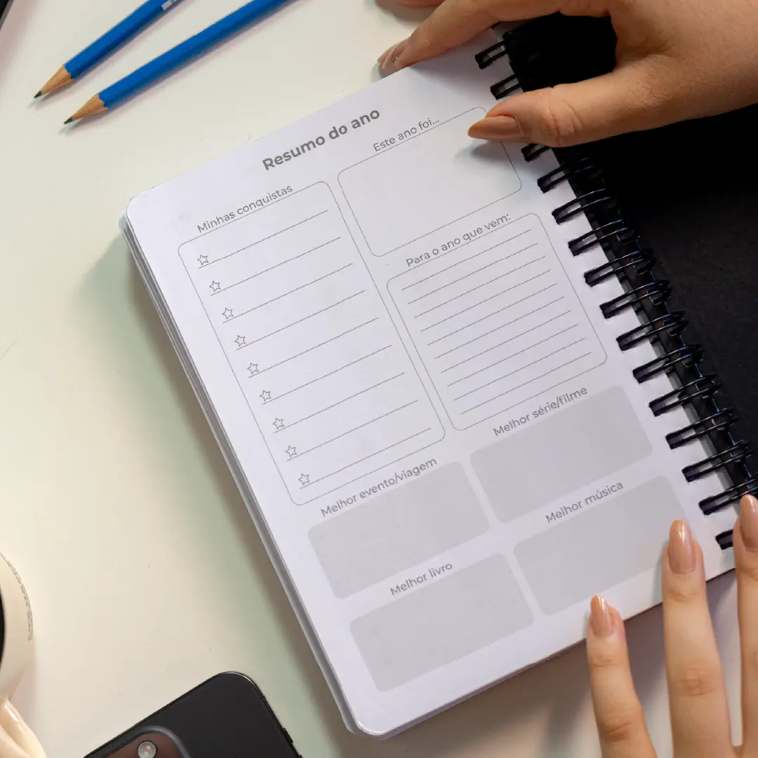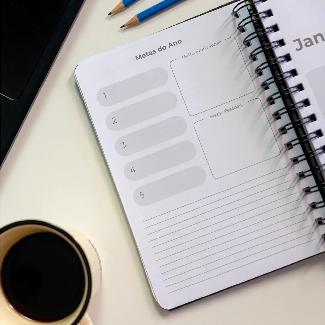 Ideal para quem deseja um planejamento diário detalhado, com espaço para metas, hábitos e reflexões.