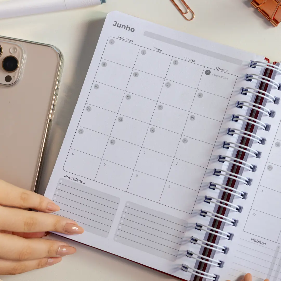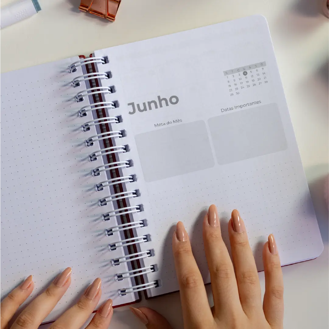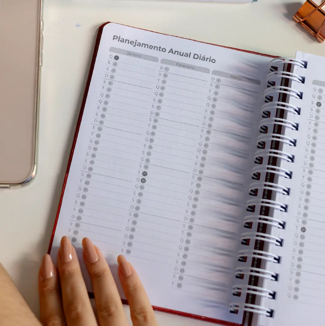 Com estrutura datada e espaço diário, ele te ajuda a acompanhar hábitos, metas e reflexões, mantendo o planejamento em harmonia com o coração.