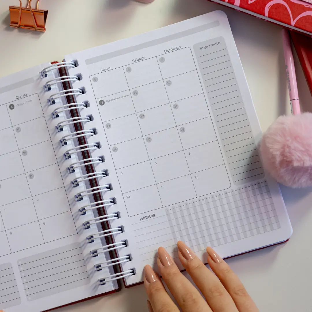 O Planner Diário Red 2026 é aquele empurrão de energia que toda mulher precisa — prático, bonito e feito para quem ama viver com intensidade e organização.