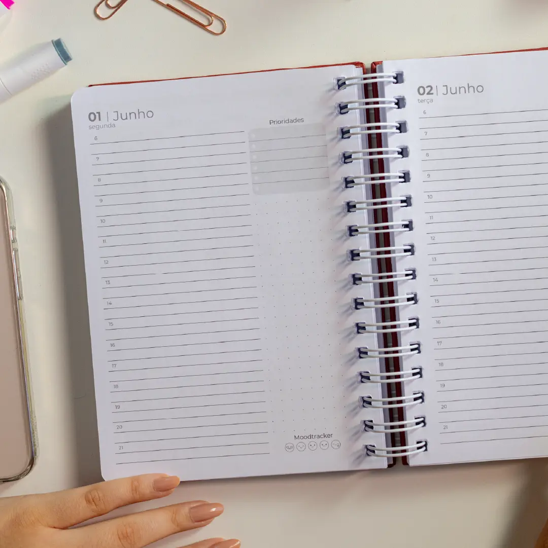 O Planner Diário 2026 Red da Mag é intensidade em forma de papelaria. Sua capa vermelha reflete paixão e energia — perfeita para quem quer começar o ano com atitude e foco.