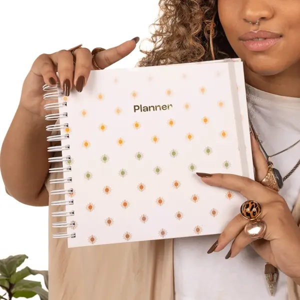 - Capa dura resistente: Protege seu planner com estilo e durabilidade. A aplicação de hotstamping na capa adiciona um toque sofisticado, tornando-o um acessório charmoso que você terá orgulho de carregar.