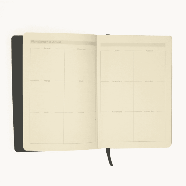 A seção de planejamento anual permite que você visualize suas metas de longo prazo e estabeleça prazos importantes.