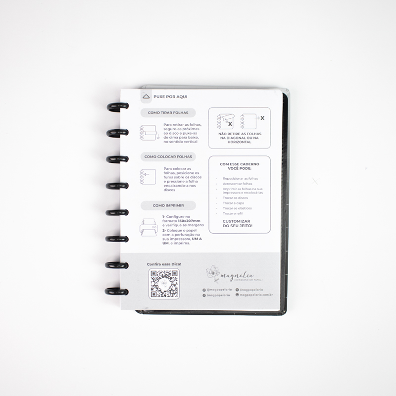 CADERNO DE DISCO MAGNOLIA CONCRETO SOMBRA GRID